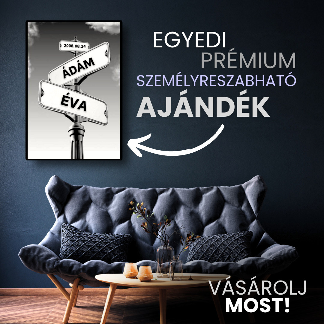 Egy gyönyörű emlék, dátummal felidézve. Személyre szabhatod ezt a vászonképet neveitekkel és különleges dátummal, hogy mindig emlékezzetek a szép pillanatokra.